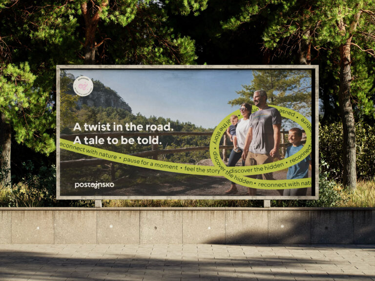 V jedro znamke smo postavili obiskovalca in njegov stik z nami: prvi pozdrav, prvi pogled, prvi občutek. Zato smo v oblikovanje premišljeno vtkali trenutke topline, presenečenja in drznosti, ki izražajo naš značaj. Barvna paleta ponazarja kontrast med naravo in človekom, med tem kaj lahko pričakujemo in med tem kaj nas lahko preseneti.
